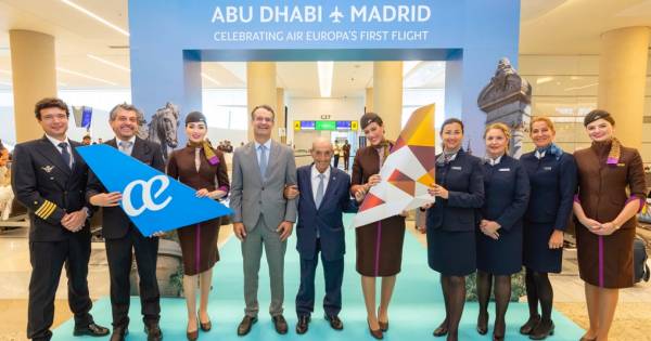 Etihad Airways and Air Europa have celebrated a historic milestone as Air Europa operates its inaugural wet-lease flight from Abu Dhabi to Madrid, marking the Spanish carrier’s first-ever aircraft operation from the Middle East.