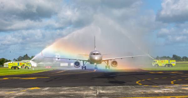 Jetstar’s first-ever direct flight between Hamilton and Christchurch took off Monday, as the airline celebrated 20 years of operations in
